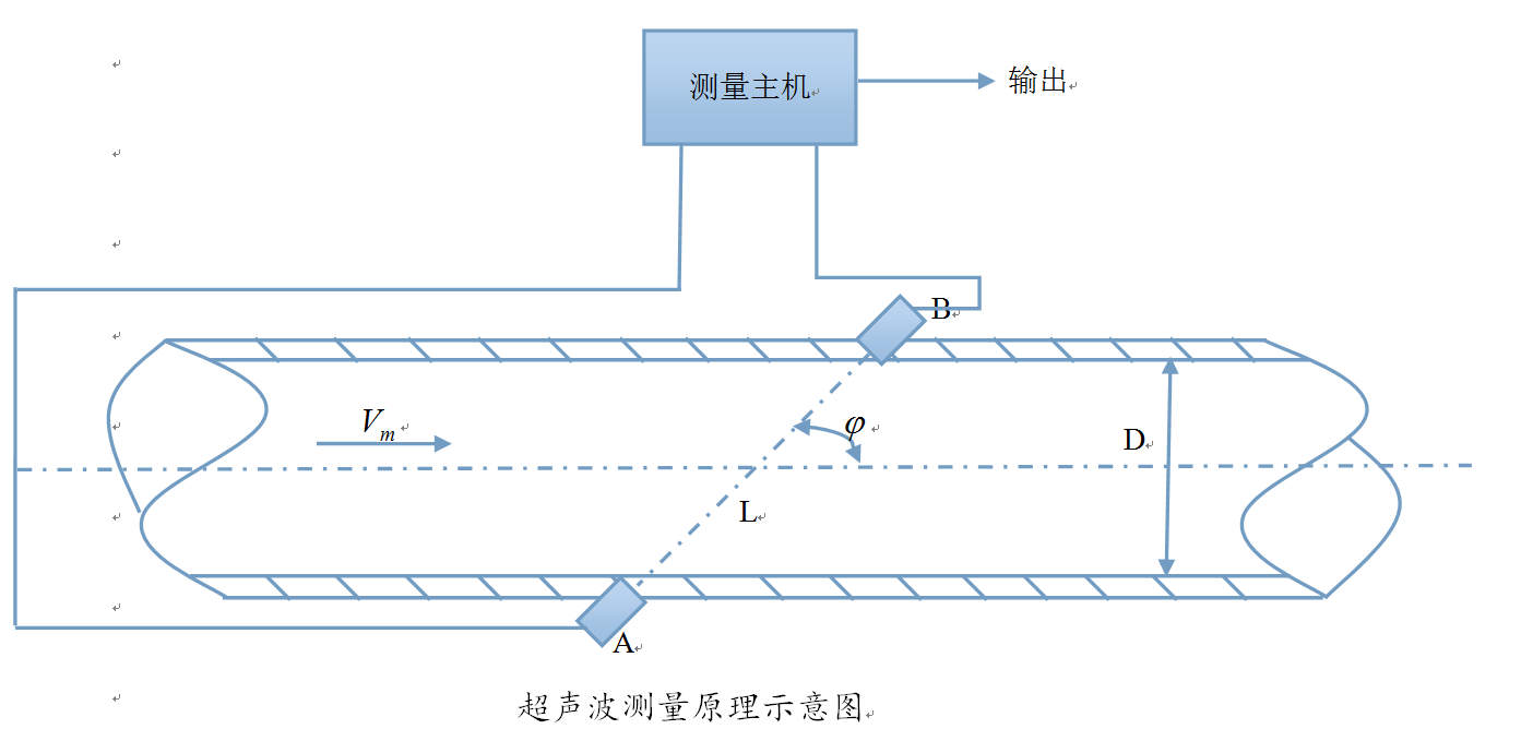 流量計(jì)以測(cè)量聲波在流動(dòng)介質(zhì)中傳播的時(shí)間與流量的關(guān)系為原理。通常認(rèn)為聲波在流體中的實(shí)際傳播速度是由介質(zhì)靜止?fàn)顟B(tài)下聲波的傳播速度(