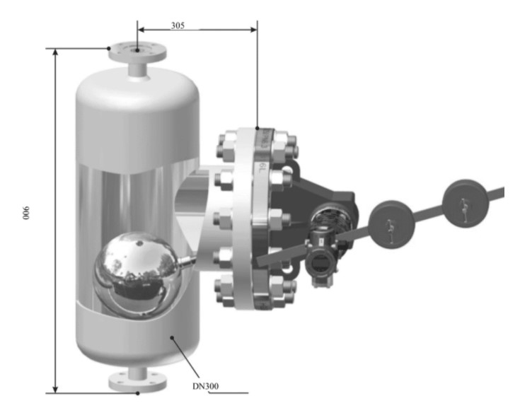 SI-U03系列電動浮球液位變送器的法蘭安裝在介質罐的側壁上。