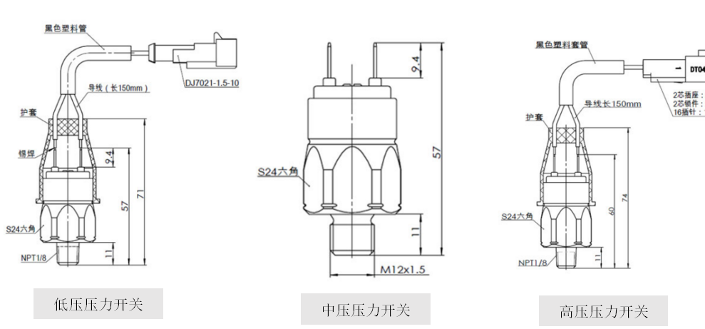 觸點允許最大負載42V,4A 工作穩定范圍:—40~120°C.開 關:100VA 標稱電壓:24V額定功率:45W 重復性能:+5%防護等級:IP65 電氣連接:6.3*0.8插片壓力接口:不銹鋼 工作壽命:100萬次(eg:壓力循環0~12MPa~0)實拍圖片: